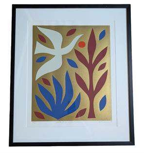 JOHN COBURN (1925-2006) SCREENPRINT, ED 21/50 WHITE BIRD IN THE GARDEN, SIGNED AND TITLED