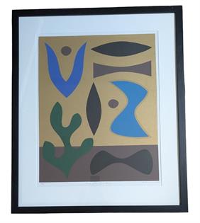 FRAMED WALASSE TING RED HORSE WITH LITHOGRAPH IN COLOURS. A.P. SIGNED FRAMED BEHIND GLASS