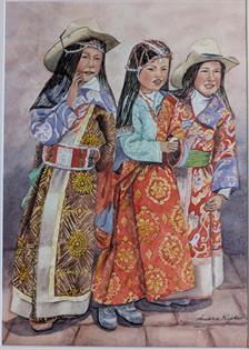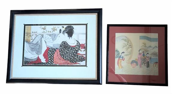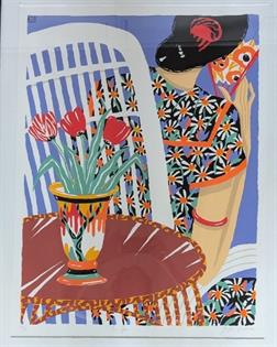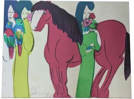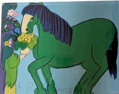 FRAMED WALASSE TING GREEN HORSE AND WOMEN. A.P. COPY BEHIND GLASS