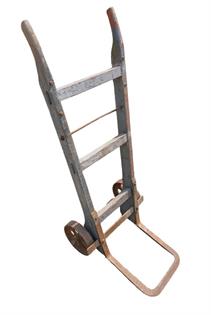 OLD RAILYWAY LUGGAGE TROLLEY WITH STEEL WHEELS