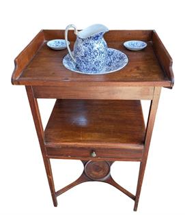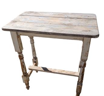 RUSTIC SIDE TABLE, GAL TUB AND BEER TRAYS