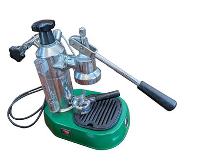 LA PAVONI ITALIAN EXPRESSO MACHINE - RE-WIRED TO AUSTRALIAN PLUG. WORKING ORDER. SLIGHT CORROSION ON GREEN BASE