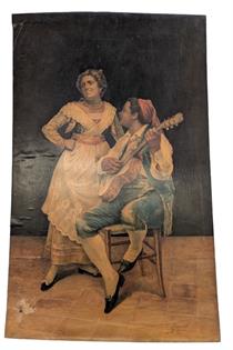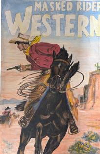 FRAN SPAIN MASKED RIDER WESTERN PAINTING - FRAME NEEDS STRENGHTENING AND SOME SURFACE DAMAGE