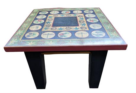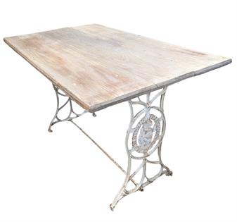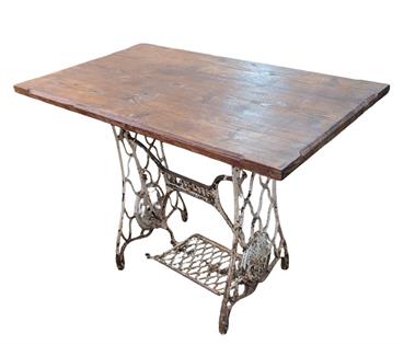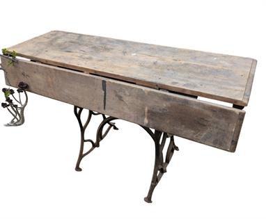 CAST IRON SEWING BASE TABLE WITH WOODEN TOP