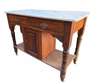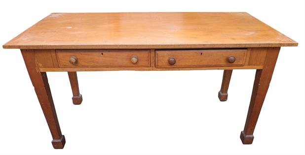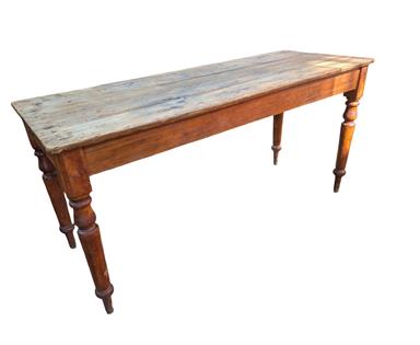 19TH CENTURY FRENCH SCULLERY TABLE - DRAWERS ON BOTH SIDES. KAURI PINE TOP AND OREGAN BASE- (PURRUMBETE HOMESTEAD) FROM THE ESTATE OF SANDY AND GRAHAM SELLARS JONES 'CHANDPARA' TYLDEN