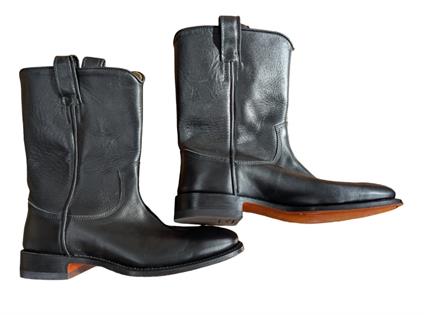 AS NEW RM WILLIAM BLACK LEATHER BOOTS - WITH CLOTH BAGS (MENS SIZE 8)