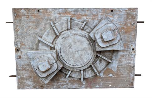 LARGE INDUSTRIAL WOODEN MOULD AND CERAMIC ELECTRICITY CONDUCTORS. MOULD BUILT FOR MURRAY IRRIGATION WATER PUMPS - C 1900