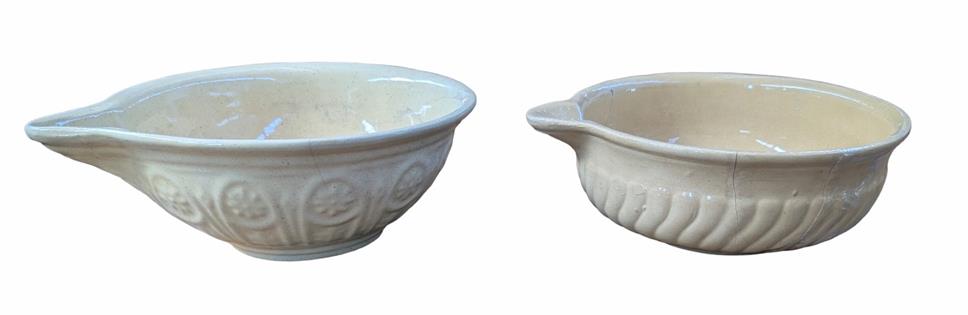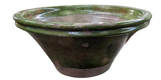 LARGE FRENCH TIAN MIXING BOWL IN OLIVE GREEN - SLIGHT LIFTING IN GLAZE