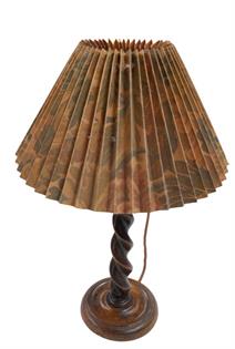 A BARLEY TWIST WOODEN TABLE LAMP WITH PAPER SHADE