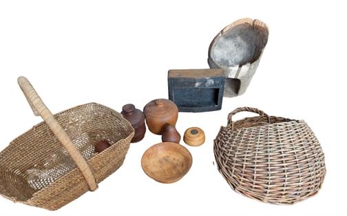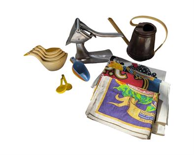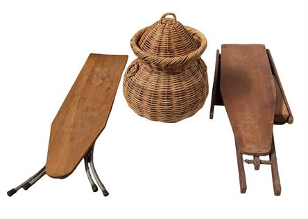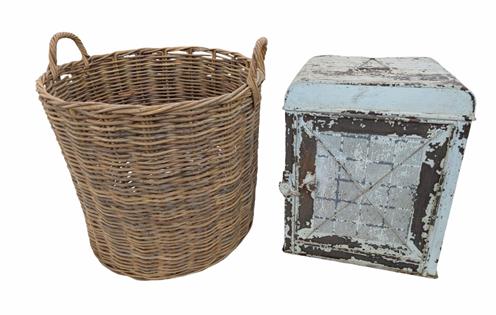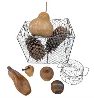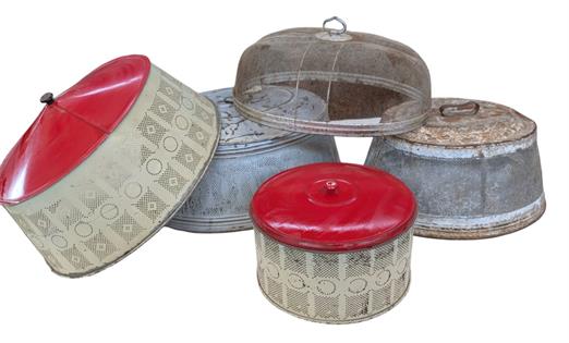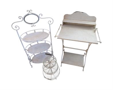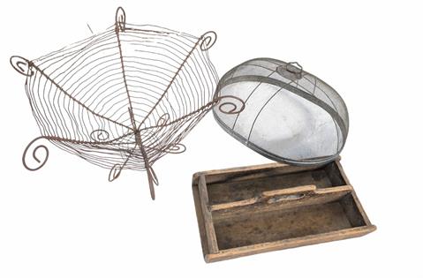 WIRE FRUIT BASKET, CUTLERY STOW AND MEAT COVER