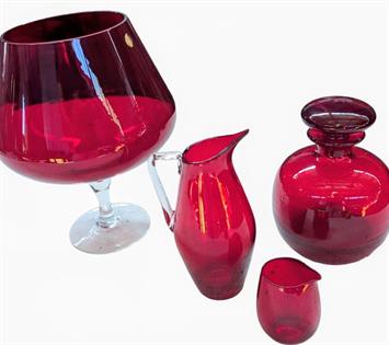 COLLECTION OF SUCCULENTS IN FIRE ENGINE RED GLAZED POTS X 3