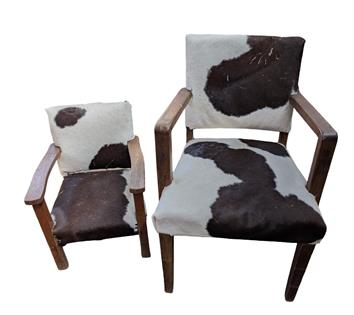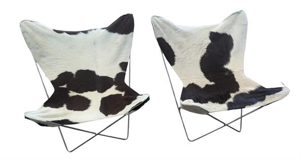 PAIR OF COWHIDE BUTTERFLY CHAIRS: ONE BROWN/WHITE ONE BLACK/ WHITE