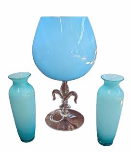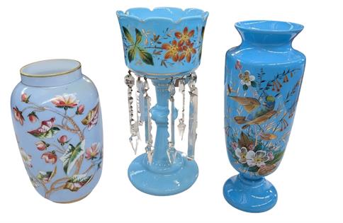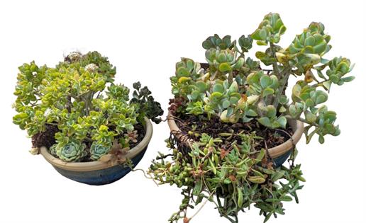 TWO SUCCULENTS IN BLUE TERRACOTTA POTS
