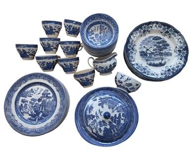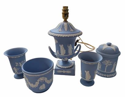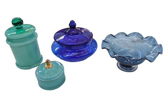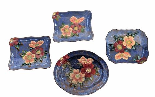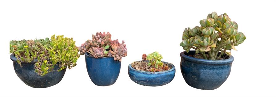COLLECTION OF SUCCULENTS IN BLUE GLAZED POTS X 4
