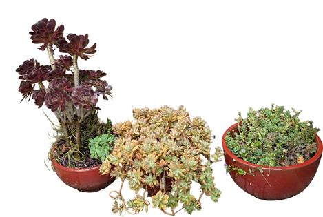 THREE SUCCULENTS IN TERRACOTTA POTS