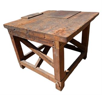AN INDUSTRIAL BASE GARDEN TABLE