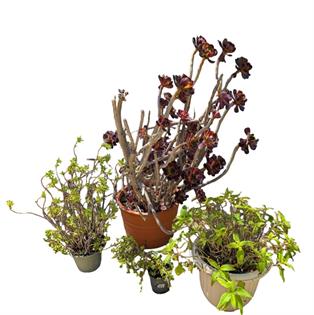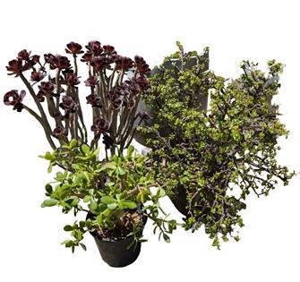 COLLECTION OF SUCCULENTS BLACK PLASTIC POTS
