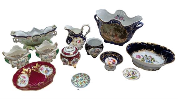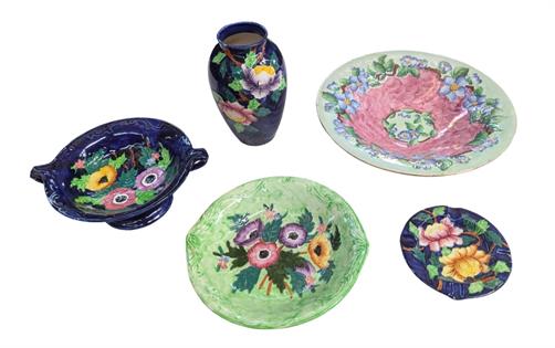 COLLECTION OF EUROPEAN HAND PAINTED POTTERY PLUS LARGE LAURA ASHLEY BOWL