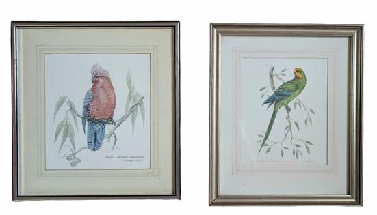 TWO GEOFFREY STOCKS (1930 - ), WATERCOLOURS - GALAH AND PARRAKEET, SIGNED AND TITLED