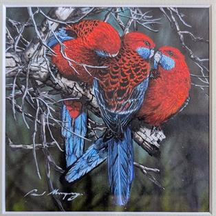 PAUL MARGOCSY (1945 - ), CRIMSON ROSELLAS WATERCOLOUR, SIGNED