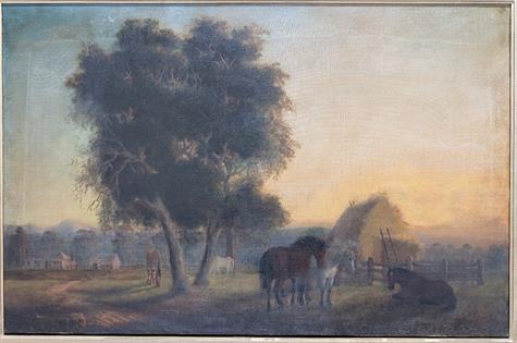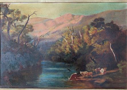 FRAMED OIL ON CANVAS OF COWS AT THE RIVER - SIGNED M PRICE - CONSERVATION RESTORED AND FRAME