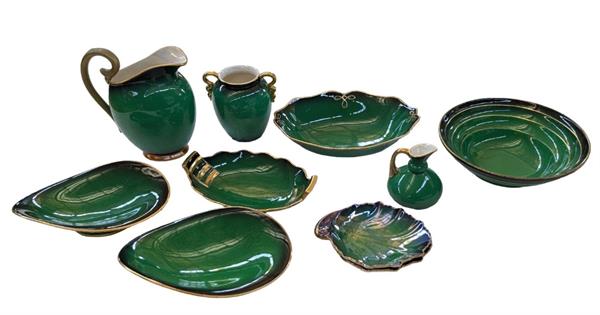 COLLECTION OF SUCCULENTS IN TEAL GREEN GLAZED POTS