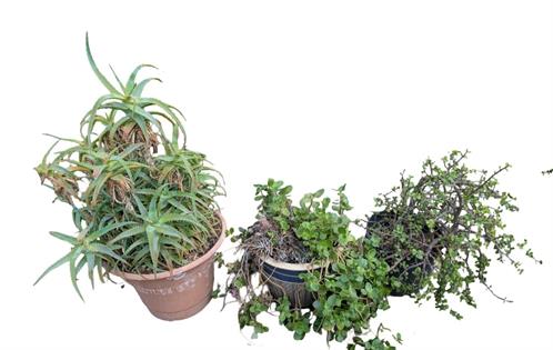 THREE POTTED PLANTS - ALOE, SUCCULENT AND JADE