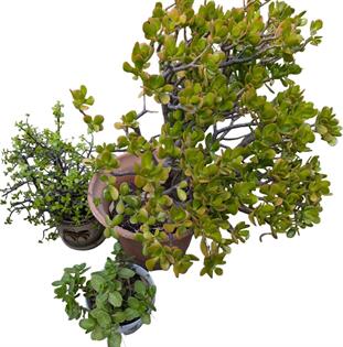 THREE POTTED PLANTS - SUCCULENTS AND JADE