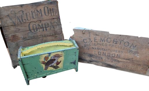 OLD DEPRESSION FRUIT BOX GARDEN POTTING TABLE AND FRUIT BOXES